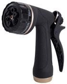 70360 Features: -Spray nozzle. -Color: Black. -Non corrosive metal body. -Locking clip allows for continuous spray. -Insulated comfortable grip. -6 selectable patterns include jet, cone, shower, full, flat and soaker.